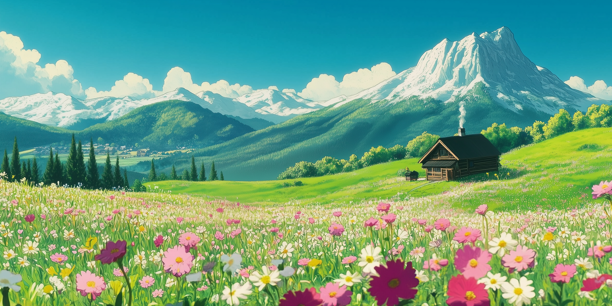 Anime-inspireret bjerglandskab
