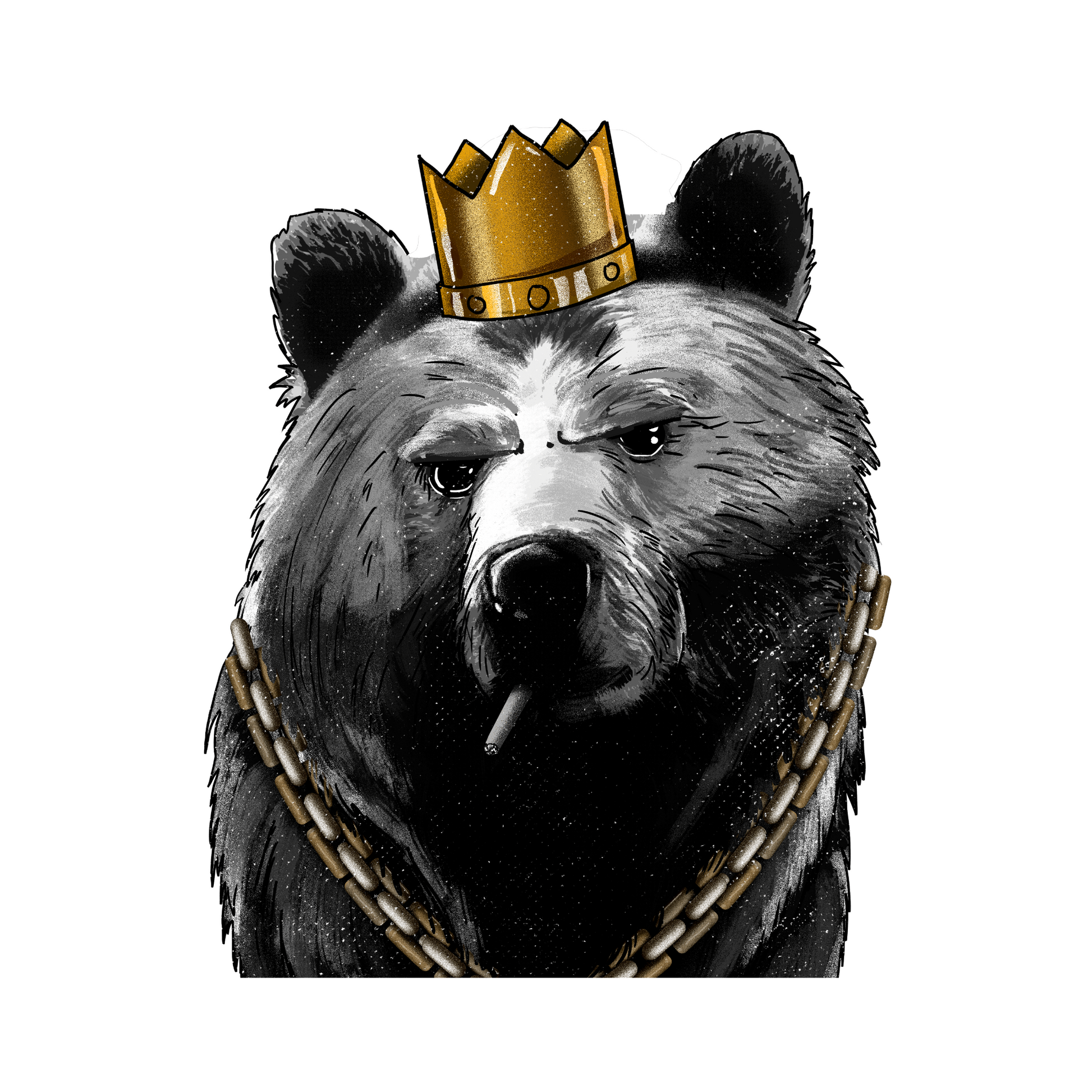 Vis din vilde og uforudsigelige side med vores t-shirt, der har et unikt motiv af en bjørn iført kongekrone og med en smøg i munden. Dette design kombinerer styrke og attitude med en cool, humoristisk kant – perfekt til dig, der ikke går på kompromis med din stil.