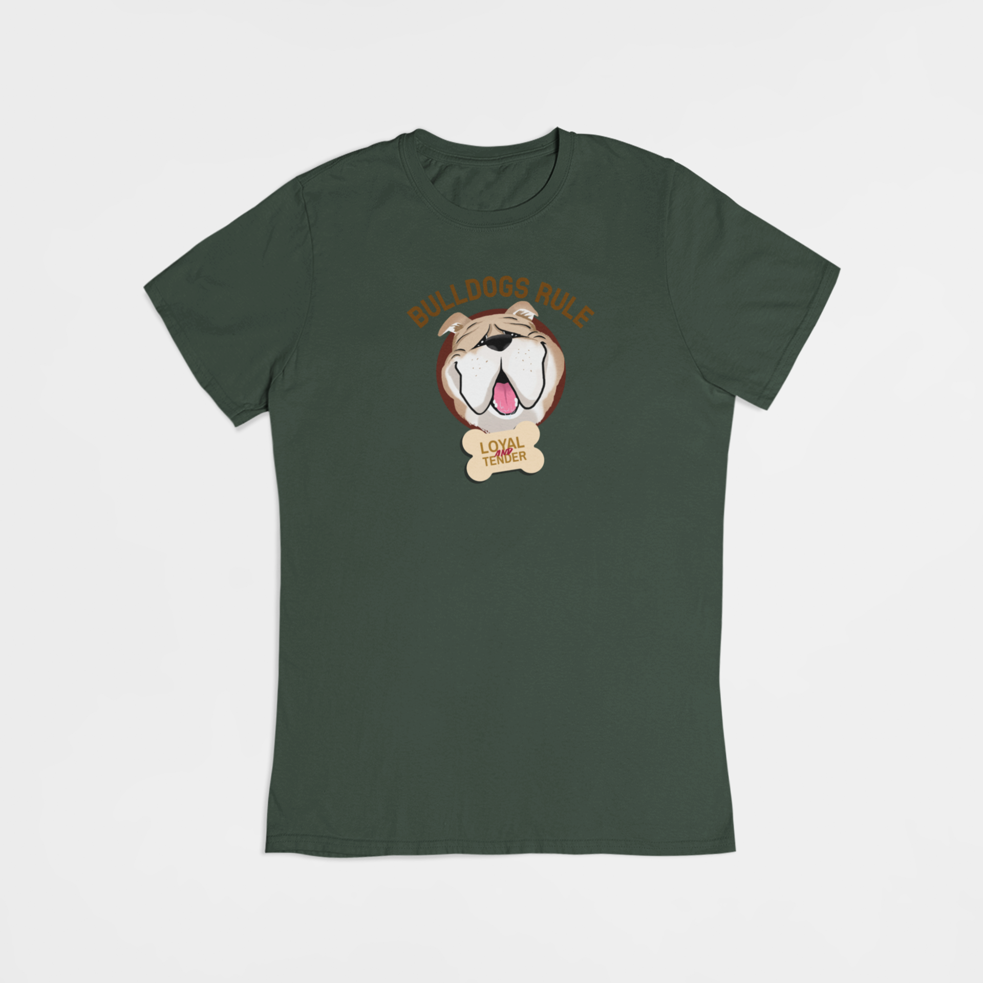 Vis din kærlighed til en af verdens mest ikoniske hunderacer med denne T-shirt med bulldog og citatet “Bulldogs rule”. Det kraftfulde og humoristiske design hylder bulldogens unikke personlighed – stærk, stædig og uimodståelig.