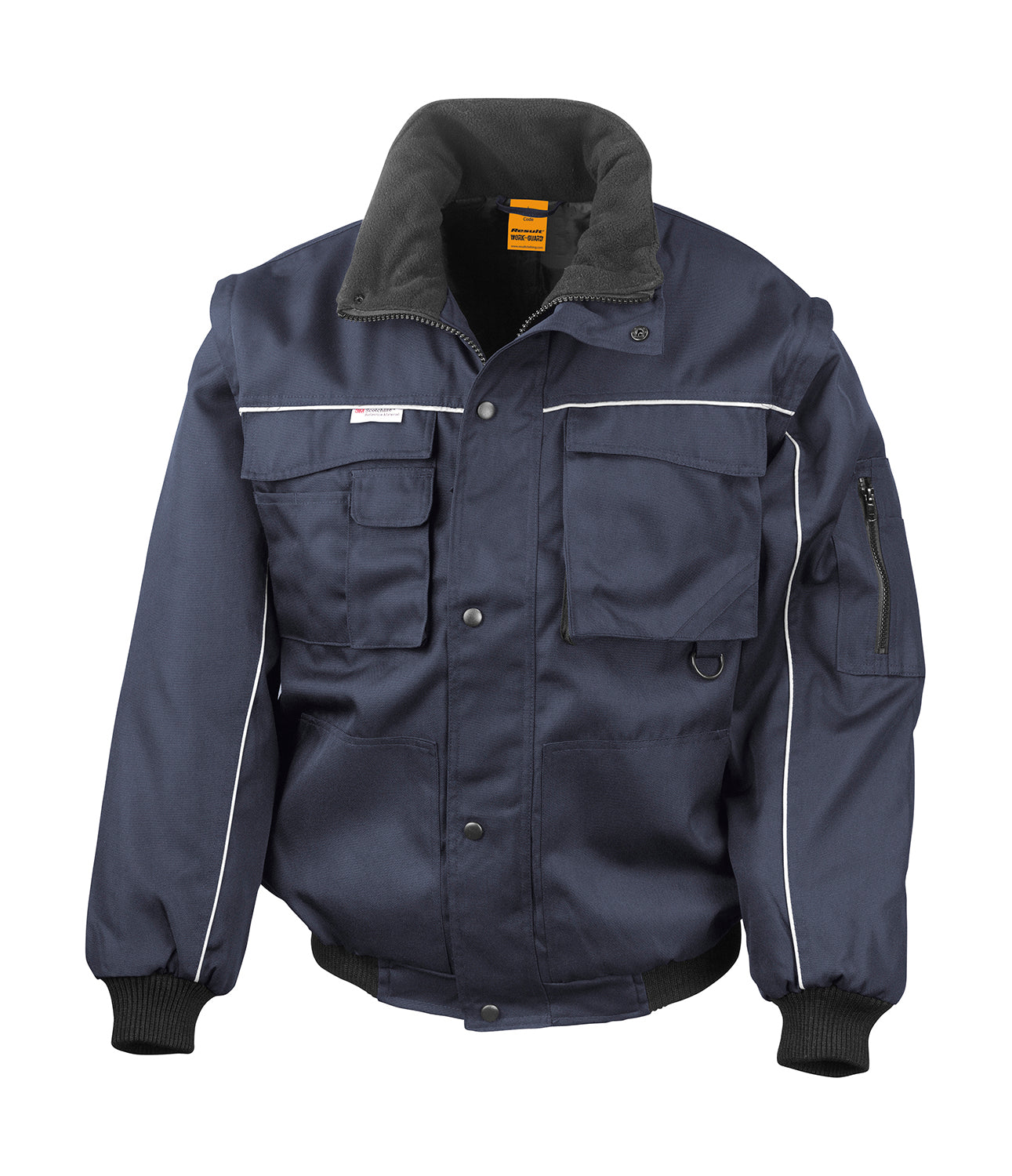 Funktionel jakke med aftagelige ærmer, vindtæt og vandafvisende materiale samt varmeisolerende Thermo Protec-for. Flere lommer, ID-kortholder og refleksdetaljer på bryst og ærmer.