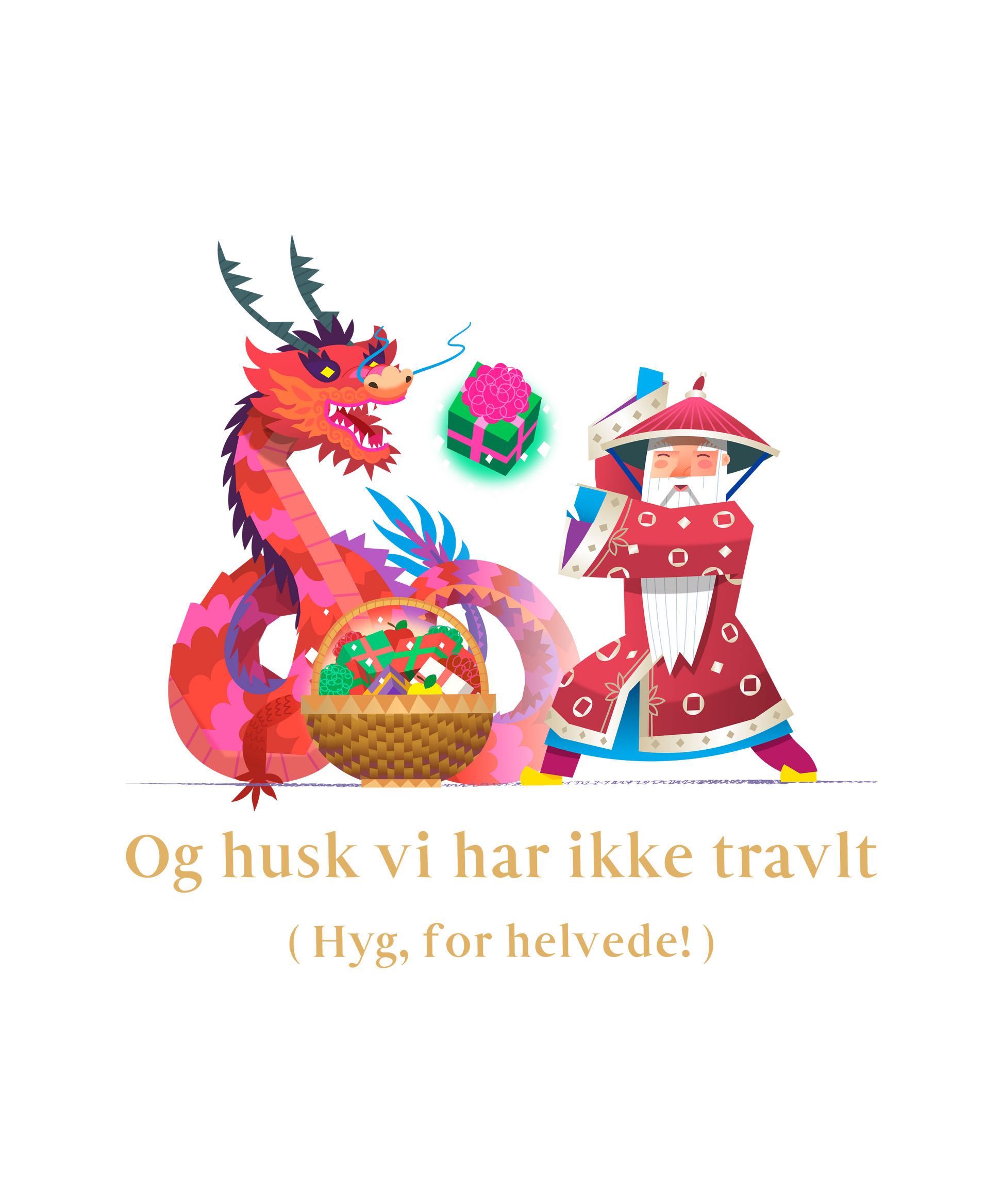 Sjovt og unikt design: En drage og en julemand i perfekt kaotisk harmoni.